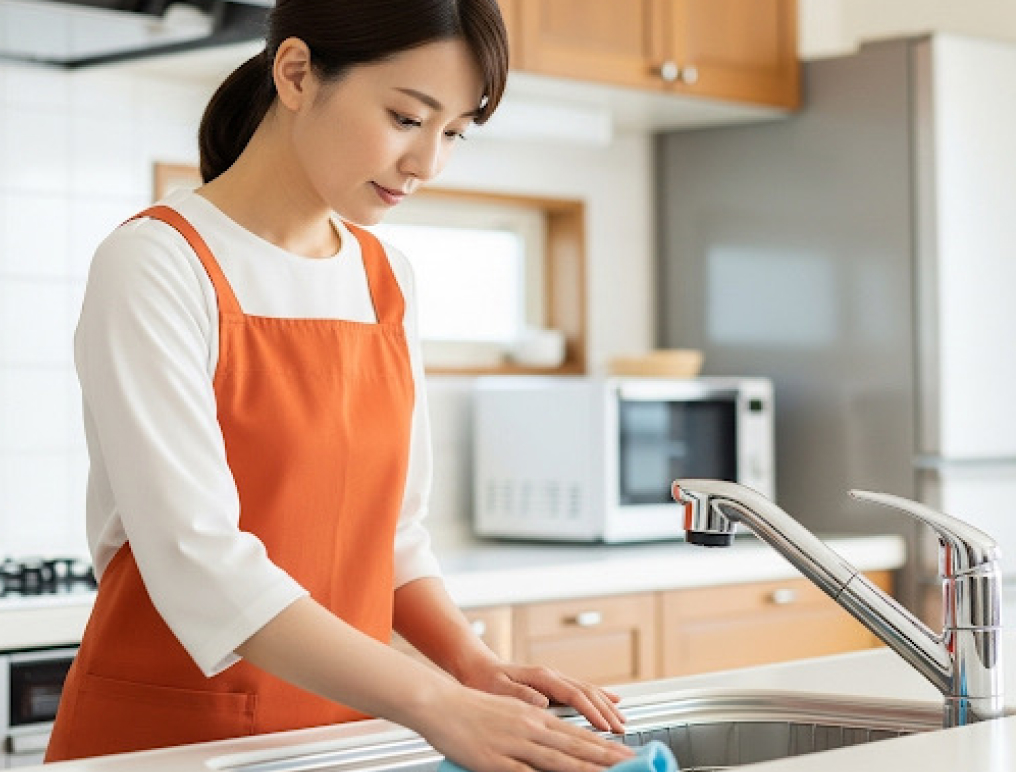 シンク内や蛇口の水垢、食器洗い、五徳やコンロ、壁の油汚れなどを清掃いたします。
